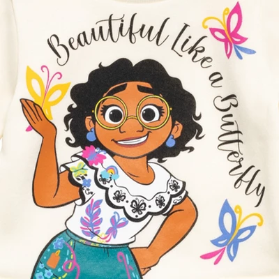 Join Mirabel Madrigal and her family for a magical adventure in this Disney Encanto Sweatshirt & Leggings. Save the miracle candle with Mirabel, stay strong like Luisa, grow flowers with Isabela, and donât forget that we donât talk about Bruno! Watch your kid discover their own magic dressed in this cute and stylish long sleeve graphic sweatshirt and leggings.