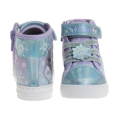 - DISNEY FROZEN: Officially licensed Frozen sneakers for toddler girls. Frozen sneakers are designed with his favorite characters Anna & Elsa. Hightop casual Frozen sneakers.