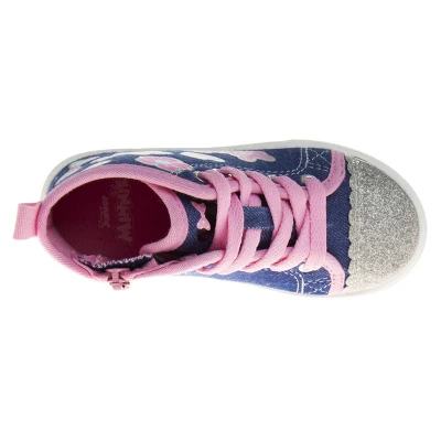 - Disney: These Minnie Mouse Toddler High Top sneakers are an officially licensed girls footwear product. These high tops are designed with cute glitzy Minnie Mouse artwork and are perfect for athletic or casual wear. With fantastic designs and affordable pricing, these sneakers are a must-buy for your child’s everyday wear.