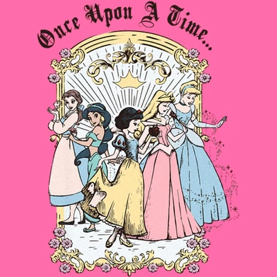 - Strut your stuff with this stylish new every day girls’ cropped t-shirt that is perfect for every occasion! Featuring Jasmin, Cinderella, Aurora, Belle, and Snow White are featured in a retro art style with the phrase: “Once Upon a Time,” above them.
