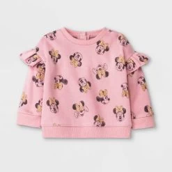 Disney Baby Girls’ 2pc Minnie Mouse Long Sleeve Fleece Pullover And Jogger Set – Pink
